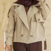 بامبر جکت با رنگبندی و سایزبندی 1 و 2. سایز 1 مناسب 38 تا 44 و سایز 2 مناسب 46 تا 50. دور سینه سایز 1: 128 و سایز 2: 132. جنس پارچه: کتان. مدل یقه: کاستری. کمربنددار و آستردار. بسته شدن: دکمه پیله دار و ژیله دار. سرشانه پاگون دار و قد کار: 59.