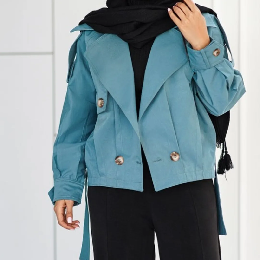 بامبر جکت با رنگبندی و سایزبندی 1 و 2. سایز 1 مناسب 38 تا 44 و سایز 2 مناسب 46 تا 50. دور سینه سایز 1: 128 و سایز 2: 132. جنس پارچه: کتان. مدل یقه: کاستری. کمربنددار و آستردار. بسته شدن: دکمه پیله دار و ژیله دار. سرشانه پاگون دار و قد کار: 59.