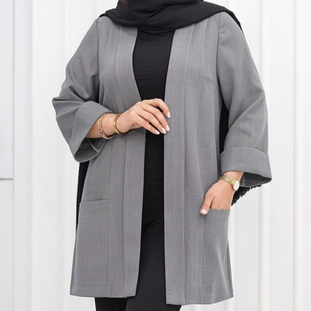 مانتویی با رنگبندی و سایزبندی متنوع که شامل سایزهای 1 تا 3 میباشد. مناسب سایز 1 برای افراد با سایز 38 تا 40، سایز 2 برای 42 تا 44، و سایز 3 برای 46 تا 48 است. جنس پارچه شانتون است و با قزن بسته میشود.