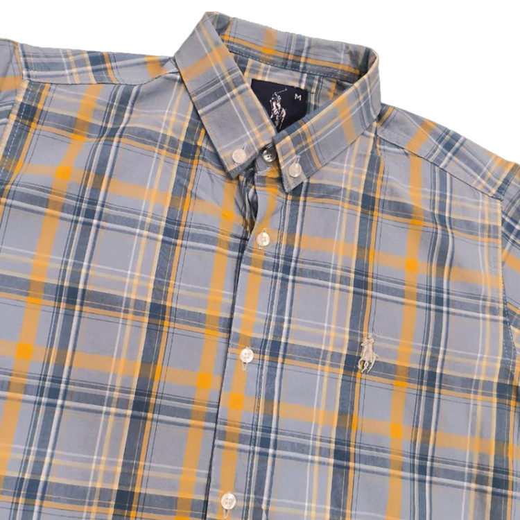 پیراهن آستین کوتاه چهارخانه اندیگو POLO