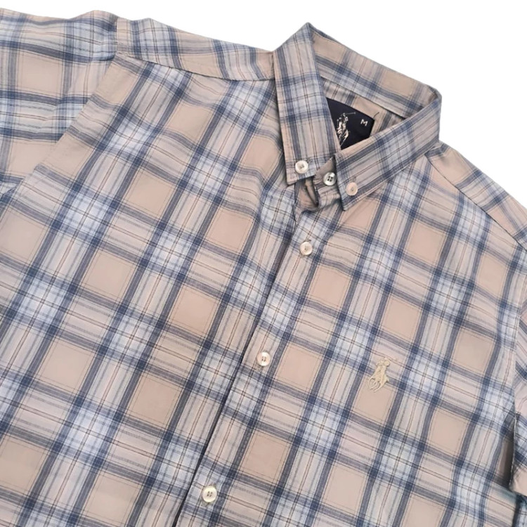 پیراهن آستین کوتاه چهارخانه اندیگو POLO
