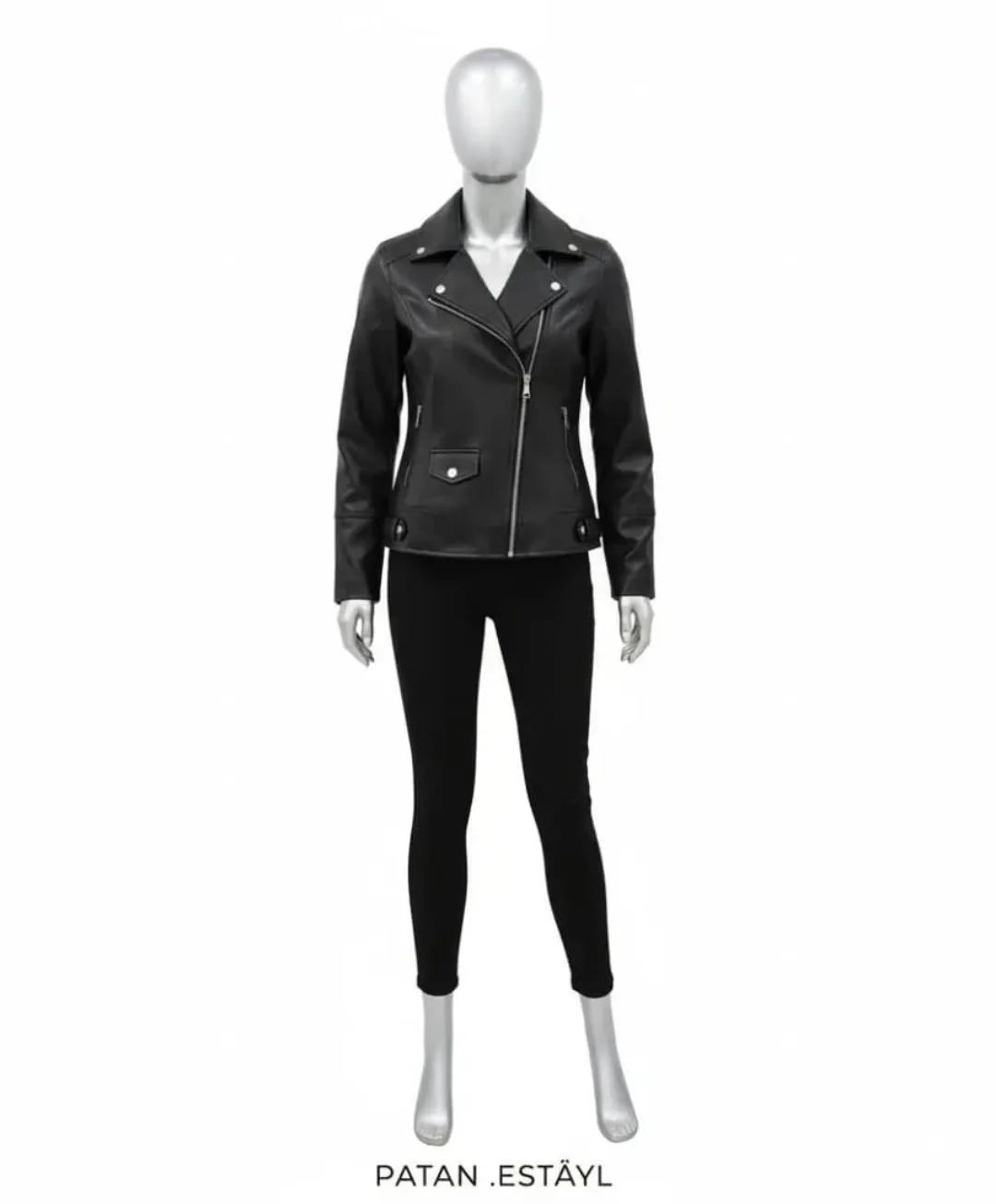 کت چرم مناسب مجالس خصوصی با مدل یقه انگلیسی و جیب کاربردی. قد: ۶۰ سانتیمتر و جنس پارچه چرم پشت کتان.