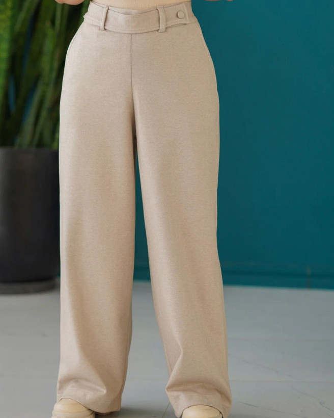 شلوار با فرم بگ و جنس پارچه فوتر، مناسب برای سایزهای ۱ تا ۳.