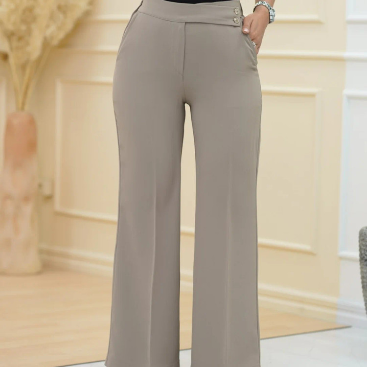 شلوار دمپا با دور کمر کشسانی و جنس پارچه کرپ پارکر. بسته شدن با زیپ و دکمه، دارای جیب. قد این شلوار 105 سانتیمتر است.