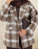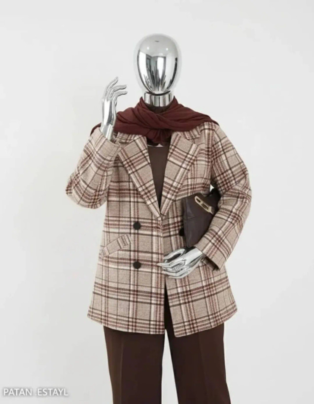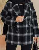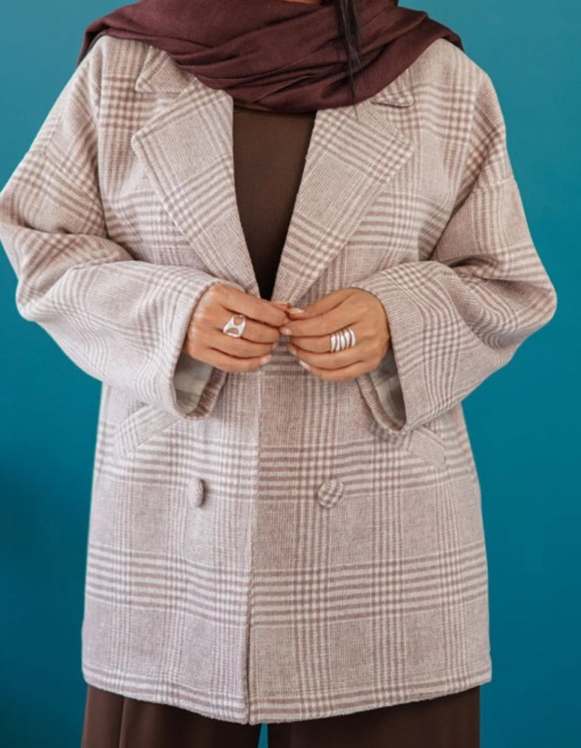 پالتو با رنگبندی ژورنال، مناسب برای سایز ۳۸ تا ۴۶. دور سینه ۱۲۰ سانتیمتر، جنس پارچه فوتر، مدل یقه انگلیسی، با جیب کاربردی و قد ۷۰ سانتیمتر. آستردار و دارای ۴ دکمه.