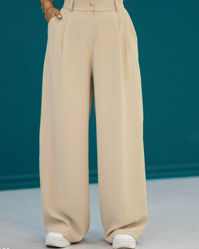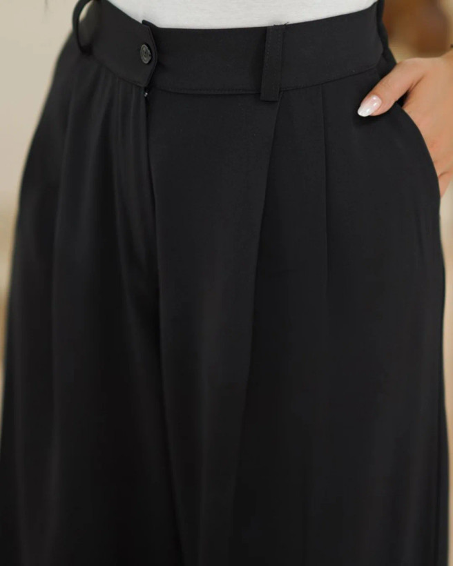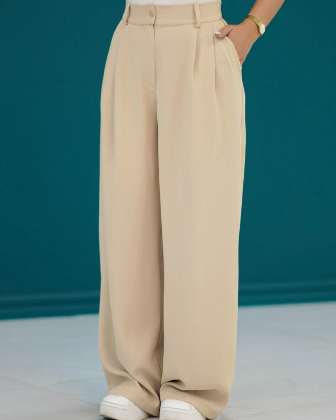 شلوار فول بگ با جنس پارچه کرپ پارکر، پشت شلوار کمر کش، جیب دار، قد شلوار 103 سانتیمتر.