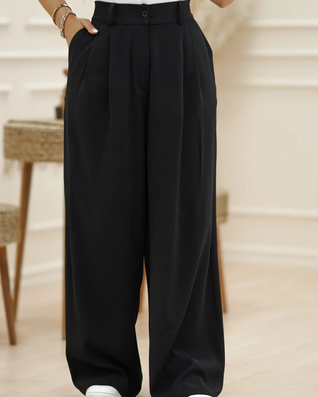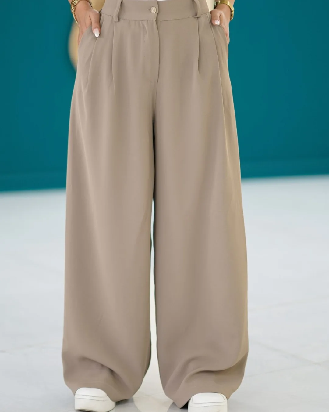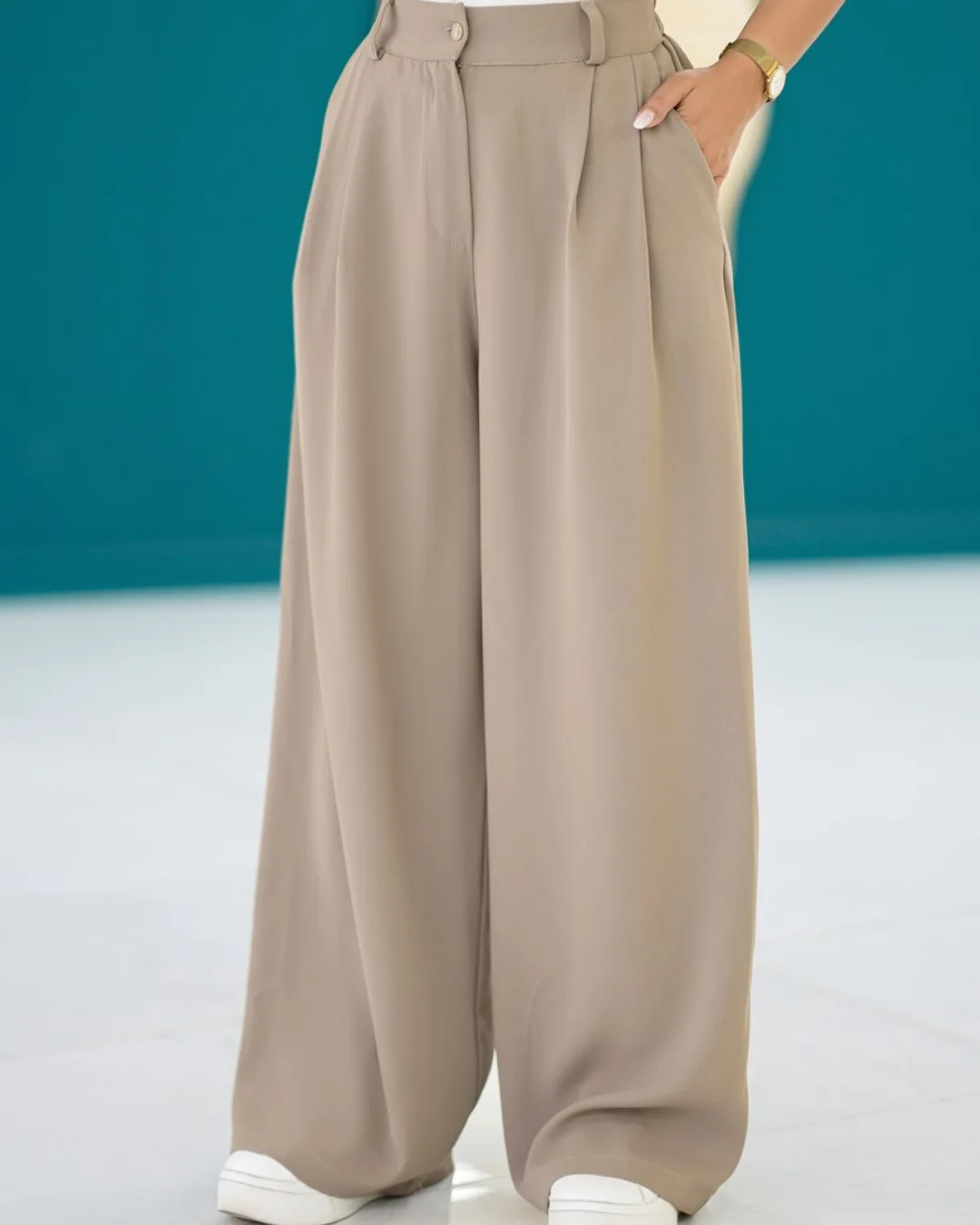 شلوار فول بگ با جنس پارچه کرپ پارکر، پشت شلوار کمر کش، جیب دار، قد شلوار 103 سانتیمتر.