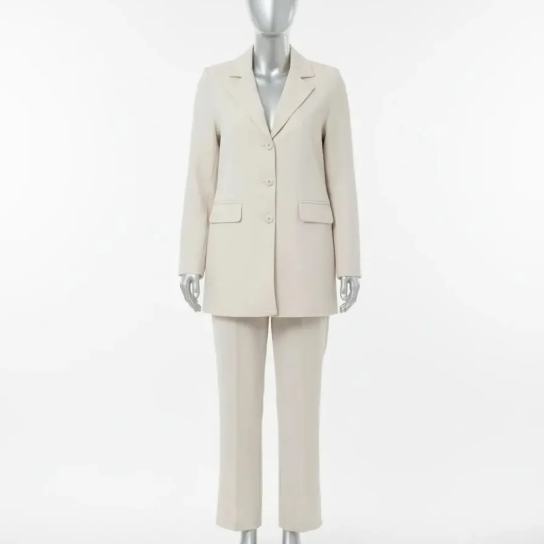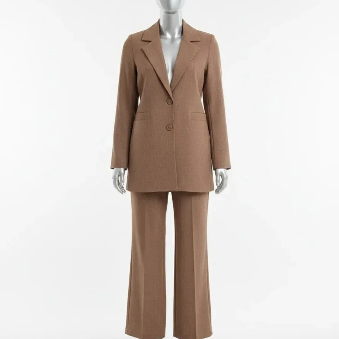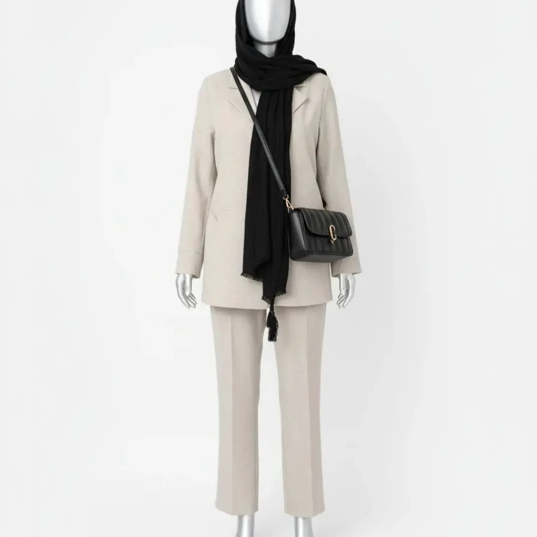 کت و شلوار مناسب مجالس خصوصی با رنگبندی ژورنال و جنس پارچه شانتون. مدل یقه انگلیسی با قد 80 برای کت و 107 برای شلوار.